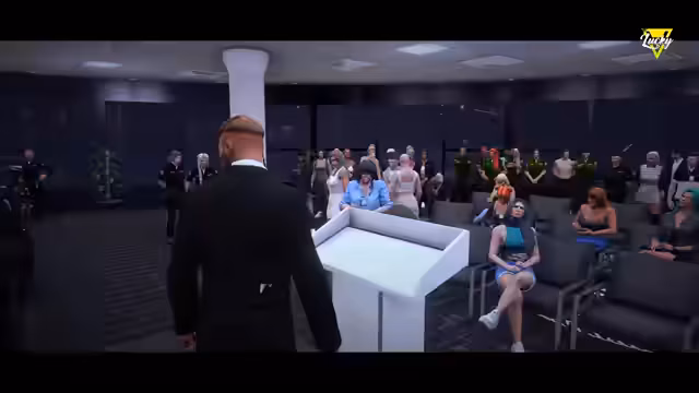 06:28:57In dem Bunker wird die Person durch mehrere Gänge und Büroflächen geführt. Nach musikalischen Performances des Priesters, die den 'großen Knall' thematisieren, wird der Plan für die Pressekonferenz bekannt gegeben. Diese soll um 21 Uhr im Vespucci Police Department (VPD) stattfinden, öffentlich sein und durch hohe Sicherheitsvorkehrungen abgesichert werden. Ein Teil der Personalkräfte soll Gebäude und Parkhäuser nach Sprengstoffen absuchen.