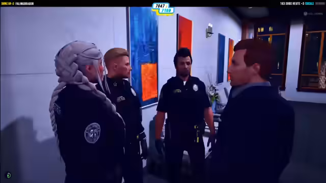 03:30:10Der Streamer stellt seinen Charakter Walter vor, der auf dem Weg zur Arbeit ist. Er erwähnt, dass es Uniformtag ist und ein weinroter Anzug getragen wird. Er erzählt von den neuesten Entwicklungen im Server: Ein Polizeiauto wurde gestohlen, ein Gefängnispus wurde angegriffen und Häftlinge sind mit einem Helikopter geflohen. Auch erwähnt er die bevorstehende Hochzeit von Miss Phoenix und den Aufruf zur Arbeitskleidung für die Koppa.