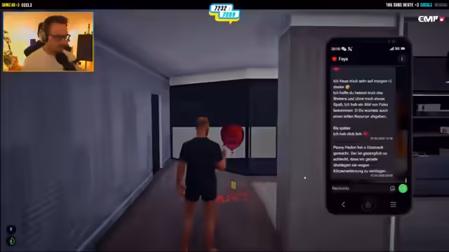 05:10:33Der Stream startet mit der Figur Dieter im GTA Roleplay, der eine neue Aufgabe im Fitnessraum erhält. Er muss fünfmal trainieren, was jedoch unklar ist, was genau darunter zu verstehen ist. Der Streamer interagiert ständig mit Dieter, um die Aufgabe durchzuführen und macht sich über dessen Fitnesszust lustig. Nach dem Training hat Dieter eine neue Aufgabe: 45 Minuten lang seinen Status zu lesen, was jedoch technische Schwierigkeiten bereitet. Schließlich muss Dieter seine Uniform wieder anziehen, was zu einem kurzen Wutausbruch führt.