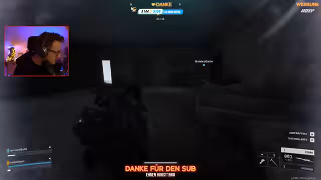 02:51:23In der letzten Minute einer Runde in Escape from Tarkov eskaliert die Situation. Der Streamer und sein Team sind aufgespürt und kämpfen um ihr Überleben. Der Streamer ruft verzweifelt nach Hilfe, als er von einem Springer (feindlicher Spieler) verfolgt wird. Die Runde endet mit einem dramatisischen Finale, in dem er versucht, sich in Sicherheit zu bringen, während die Zeit abläuft und ein weiterer Helikopter als Ausgangspunkt wartet.
