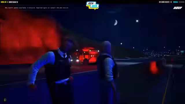 04:38:25Im Rollenspiel nimmt der Streamer die Rolle des Police Commissioners ein und wird von einer Frau, Maim, aufgesucht, die berichtet, von ihrem Ex-Partner Kyle Harrelson mit einer Eisenstange verprügelt worden zu sein. Da Kyle in letzterzeit häufig gelogen hatte, ist die Glaubwürdigkeit der Anzeige fraglich. Der Streamer entsendet einen Kollegen, um den Aufenthaltsort von PD13 zu klären, und beginnt mit Maim die Befragung der Vorwürfe.