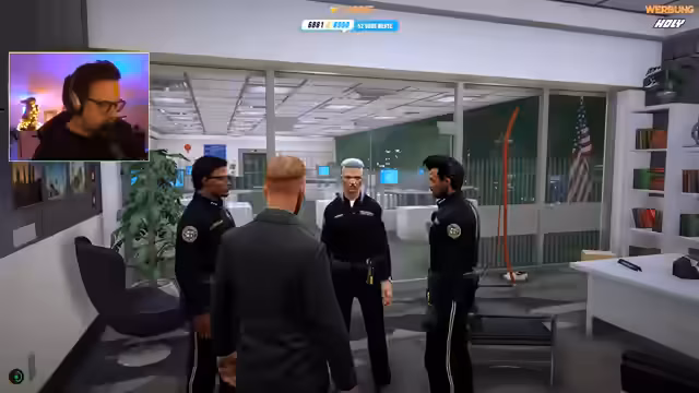 02:18:34Ab Timestamp 8314 berichtet der Streamer über ein internes Polizeibericht-Szenario, in dem ein Mitarbeiter namens Pike beschuldigter wird, vertrauliche Daten für private Zwecke genutzt zu haben. Es wird beschrieben, dass er sich in eine Kollegin verliebt habe, dabei Systemzugriffe für persönliche Gründe verwendet habe und consequently disziplinarisch belangt wird. Der Moderator erklärt die potenziellen Konsequenzen, einschließlich Kündigung und möglicher neuerlicher Einstellung, und betont die Schwere des Verstoßes gegen interne Vorschriften.
