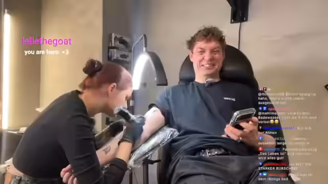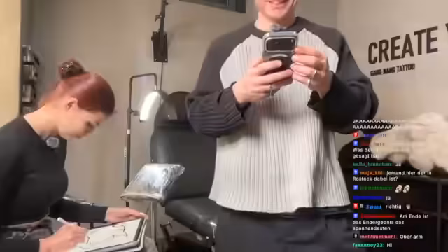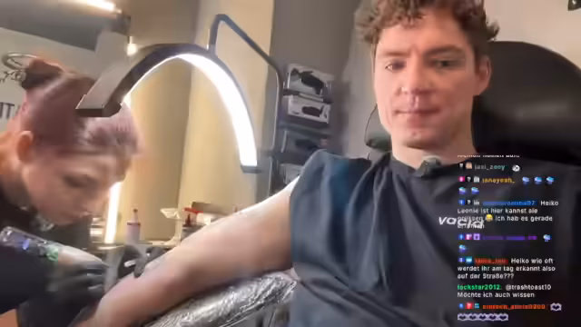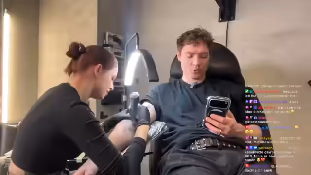 00:05:34Der Stream startet nach technischen Verzögerungen im Tattoo-Studio. Die Tätowiererin Lilly, die nach eigenen Aussagen aus der Ukraine stammt und seit eineinhalb Jahren tätowiert, wird vorgestellt. Geplant ist, ein Tattoo zu erstellen, dessen Motiv die Community im Vorfeld bestimmt hat. Der Streamer befindet sich unmittelbar vor dem Tattoo-Prozess und ist gespannt auf die Umsetzung.