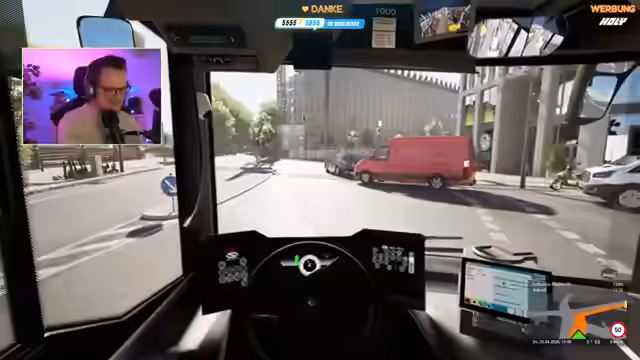 00:12:30Der Stream beginnt mit einem ungewöhnlichen Aufbau. Der Streamer stellt sein neues, umfassendes Fahr-Setup für den Bus Simulator vor. Er hat ein Lenkrad, ein iPad zur Bedienung des Ticketverkaufs im Spiel sowie eine zusätzliche Konsole zur Steuerung der Türen und anderer Fahrzeugfunktionen. Nach anfänglichen technischen Herausforderungen mit dem Mikrofonkabel und der Verbindung des iPads, die es zu stabilisieren gilt, demonstriert er die erfolgreiche Einrichtung des komplexen Systems, das es ihm ermöglicht, das Spiel realistischer zu steuern. Er erwähnt zudem eine Twitch-Aktion mit 35% reduzierten Sub-Gifts.