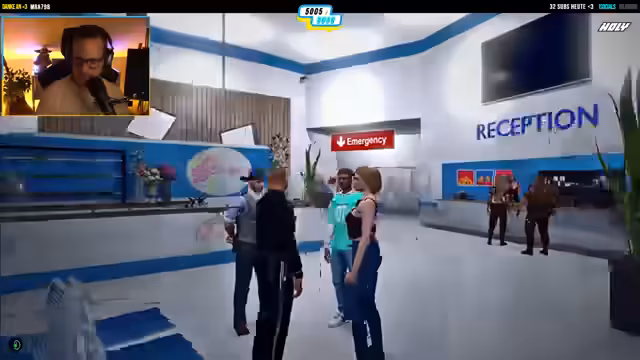 03:14:28Ein abrupter Wechsel findet statt, als ein Einsatz gemeldet wird. Eine Person ist laut Informationen unglücklich gestürzt, hat sich mehrere Sachen gebrochen und musste sogar reanimiert werden. Die Person muss mehrere Tage im Krankenhaus bleiben und benötigt in zwei Monaten eine weitere Operation. Der Streamer kündigt an, sich persönlich um alles zu kümmern, Kleidung abzuholen und in der Nähe des Krankenhauses zu bleiben, und wirkt dabei sichtlich besorgt und betroffen.