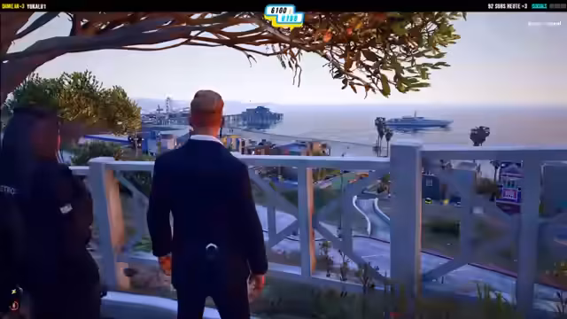 06:11:59Ein Rekrut wird zum Interviewraum gebracht, während über eine bevorstehende Hochzeit des CEO und Co-CEO der Bank auf einer Superjacht gesprochen wird. Es bestehen maximale Sicherheitsbedenken, da genau diese beiden Personen die einzigen Zugänge zur Union Depository haben. Die Idee eines Undercover-Einsatzes als Hochzeitsgäste wird diskutiert, obwohl die Möglichkeit besteht, dass das Boot gesprengt werden könnte. Es wird kurz Faye erwähnt. Später wird die Vermutung geäußert, dass das Gegenüber von sich in der dritten Person redet. Die beiden scheinen ein eingespieltes Team zu sein, das sich gegenseitig neckt und unterstützt. Die beiden fahren durch die Stadt, wobei die Skyline von Los Santos bewundert wird und über die Farben der blauen Brücke diskutiert wird, da es hier zu einer Beeinträchtigung kommt.