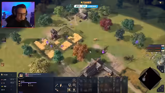04:23:34Während des Spiels kommt es zu einem erheblichen technischen Problem, der sämtlichen In-Game-Sound ausfällt. Der Streamer muss das Problem beheben, indem er die Capture-Karte neu startet und die Audio-Einstellungen überprüft. Diese Unterbrechung lenkt stark vom Spielgeschehen ab und führt zu einem Fehlen im Konzept der aktuellen Runde. Nachdem das Problem behoben ist, wird das Gameplay fortgesetzt und der Bau des zweiten Dorfzentrums erfolgreich abgeschlossen, um die Bevölkerungskapazität zu maximieren und für zukünftige Militäraktionen vorzubereiten.