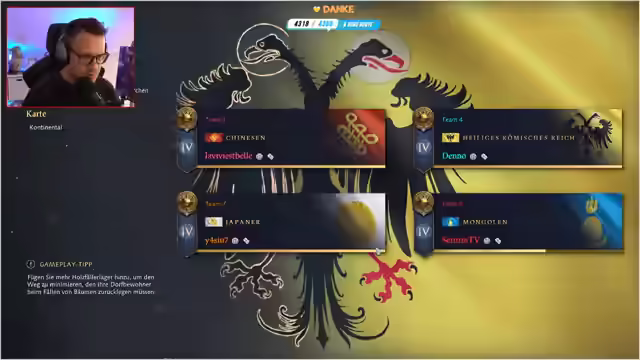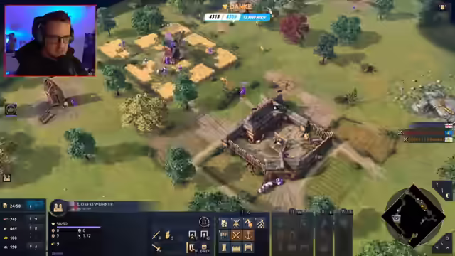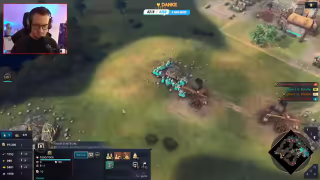 04:20:05Ein Werkbaulager wird errichtet, um Gold abzubauen, und der Gegner, der die Mongolen spielt, wird entdeckt. Es wird vermutet, dass der Gegner die Mongolen wählt, um frühzeitig eine Armee zu haben. Der Abbau von Gold wird verstärkt und ein weiteres Haus gebaut. Die Einwohnerzahl beträgt 25, und es wird betont, dass man sich beeilen muss, da ein Angriff bevorsteht. Holz wird abgehackt und ein Skistand errichtet. Es wird versucht, das zweite Dorfzentrum schnell zu bauen, um die Einwohnerzahl zu erhöhen und die Armee schneller zu erforschen. Alle helfen beim Bau des Dorfzentrums. Es wird erwähnt, dass der Gegner unten ist und sich das Gold geclaimt hat. Es wird versucht, das Gameplay zu kommentieren, da man während der Runden normalerweise sehr ruhig ist. Es wird ein zweites Dorfzentrum gebaut, um die Einwohnerzahl schneller zu verdoppeln. Es wird ein drittes Dorfzentrum in Betracht gezogen und der Fokus liegt auf Stein und Gold. Es wird erklärt, dass die Taktik diesmal anders ist.