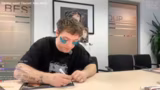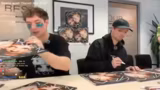 00:59:22Gegen Ende der Unterschrift-Aktion gestalten Heiko und Roman letzte Stücke kreativ mit persönlichen Widmungen wie 'You are a hero' und Sternbildern. Sie nehmen ein Foto der fertigen Stapel für ihre Social-Media-Kanäle und beenden den Stream, nachdem die große Aufgabe des Unterschreibens von über 1000 Vinyls und CDs erfolgreich gemeistert wurde.