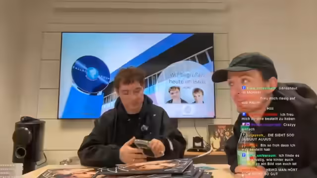 00:27:58Neben den Unterschriften fügen Heiko und Roman kreative Elemente hinzu, wie kleine Herzen und Grafiken, und reagieren auf Vorschläge aus dem Chat. Sie betonen den besonderen Wert der Vinyl, die als Musikmedium einen 'lebendigeren' Sound bietet und gleichzeitig ein cooles Deko-Objekt ist. Sie geben den Link zum Shop bekannt, wo die limitierten und nach dem Verkauf nicht wieder hergestellten Vinyls und Bundles bestellt werden können.