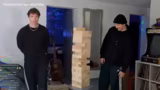 Gemeinsames XXL-Jenga-Duell endet nach dramatischem Kampf