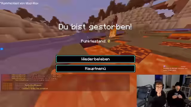 01:21:12Nach erfolgreicher Einrichtung startet die erste offizielle Challenge. Ziel ist es, als Erster in Minecraft zu sterben. Die Moderatoren werden auf identischen Startpositionen platziert und müssen kreativ nach einer Methode suchen, sich selbst umzubringen. Nach anfänglichen Verwirrungen und Taktiken wie dem Versuch, sich zu ertränken, wird ein neuer Startpunkt mit Lava ausgewählt. Der Wettbewerb bleibt spannend und fair, bis einer der beiden nach 45 Sekunden sein Ziel erreicht und die Runde gewinnt.