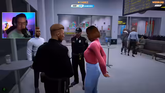 04:06:11Die Streamer wechseln zu einem Rollenspiel mit der Festnahme eines Mannes namens Adam Zielinski. Er wird verdächtigt, in Chicago staatliche Leistungen hinterzogen zu haben. Nach einer anfänglichen Vernehmung werden ihm Handschellen angelegt und er wird festgenommen. Die Gründe für die Festnahme sind ernst, und es wird ihm mit einer sofortigen Überführung ins Gefängnis gedroht, falls er seine Unschuld nicht beweisen kann. Die Verhöre finden im Polizeirevier statt.