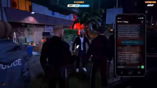 03:31:07Ein intensives Einsatzgeschehen beginnt in Little Seoul. Es geht um Razzien und Festnahmen, bei denen ein Tatverdächtiger in Handschellen steht. Die Kollegen des Streamers sind vor Ort und versuchen, die Lage zu beruhigen. Der Tatverdächtige widerspricht den Anschuldigungen und beteuert, unschuldig zu sein. Es kommt zu verbalen Auseinandersetzungen und der Verdächtige wird abgeführt.