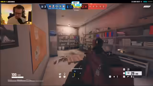 01:37:37Der Streamer und sein Team wechseln zu einem ernsteren Spielmodus und konzentrieren sich voll auf die Taktiken in Rainbow Six. Analysieren gegnerische Bewegungen und entwickeln Strategien, um die Runden für sich zu entscheiden. Der Streamer gibt Anweisungen und koordiniert das Team, um die bestmöglichen Ergebnisse zu erzielen. Die Kommunikation ist intensiv und auf die Erfolgsmaximierung ausgerichtet.