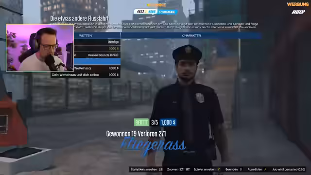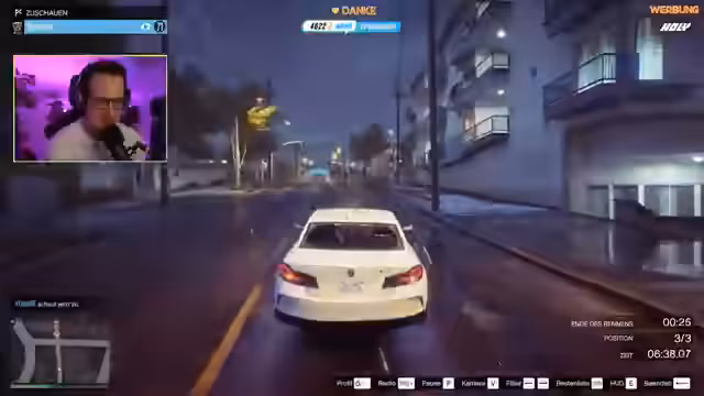 03:52:01Der Streamer startet mit dem Thema Banküberfälle in GTA, beschreibt aber schnell den Wechsel zu Straßenrennen. Er klagt über das schwere Handling der Fahrzeuge, überschlägt sich mehrfach und stößt gegen Objekte. Es finden intensive Wetten statt, bei denen 400 Euro und hohe Dollarbeträge auf den Ausgang gesetzt werden. Das Rennen wird von zahlreichen Unfällen, Rammeiattacken und gegenseitigen Beschuldigungen geprägt, was zu einem sehr chaotischen und unübersichtlichen Rennen führt.
