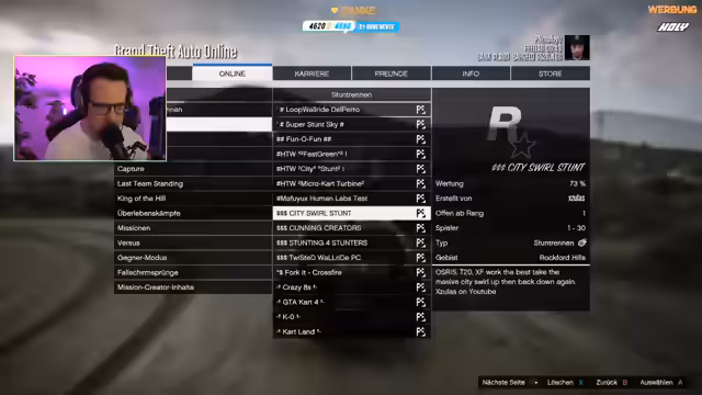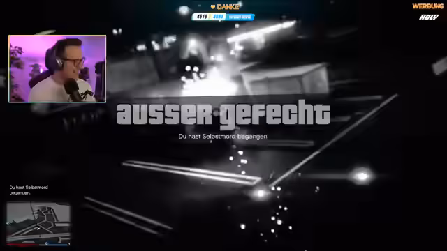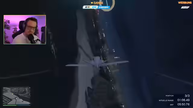 04:03:41Der Streamer wechselt zurück zu GTA Online und startet ein weiteres Rennen. Er gerät jedoch schnell in Schwierigkeiten, kann sein Fahrzeug nicht kontrollieren und fliegt mehrmals von der Strecke. Das Rennen scheint von technischen Bugs und seltsamen Fahrzeugreaktionen geplagt zu sein, was den Streamer frustriert und wütend macht. Nachdem er im Ziel explodiert, startet er das Rennen neu, was den Beginn eines wütenden und unkontrollierten Monologs auslöst.