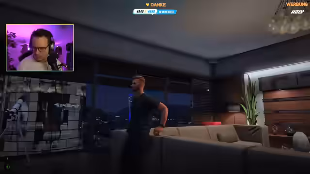 03:48:58Ein Höhepunkt des Streams ist eine interaktive Schattenfahrt. Der Streamer folgt einem anderen Spieler in einem Helikopter, um dessen Flugmanöver zu imitieren. Er versucht Loopings und andere Kunststücke, was bei erfolgreichem Manöver zu Begeisterung und Rufen im Chat führt. Der Wettbewerb ist dynamisch, da der Verfolgte versucht, dem Verfolger auszuweichen und ihn abzuschütteln. Dies schafft ein fesselndes Spektakel, bei dem technische Fertigkeiten und die reaktionsfähigkeit des Streamers im Vordergrund stehen und die Zuschauer aktiv in die Aktion einbezieht.