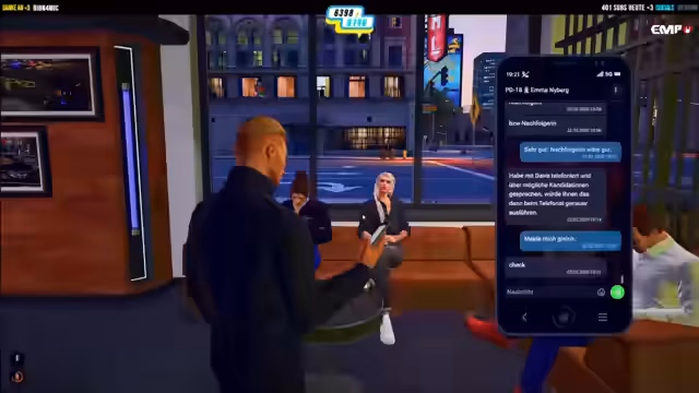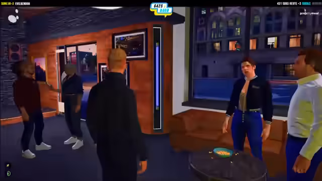 04:40:51Es wird das Konzept für die anstehende Eröffnungsfeier der Bar konkretisiert. Geplant ist eine Mischung aus Live-Musik mit mehreren Sängerinnen und "Black Stories", wahre Kriminalfälle aus San Andreas, die von den Gästen geraten und mit Preisen versehen werden. Auch die Einladung von Behörden wie der Feuerwehr und der Einsatz von einem Sicherheitsunternehmen werden als wichtige Punkte für einen reibungslosen Ablauf diskutiert.