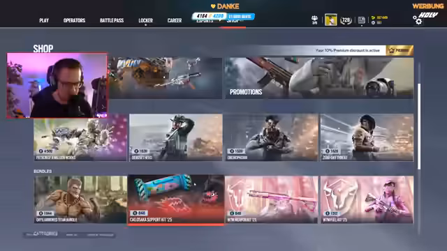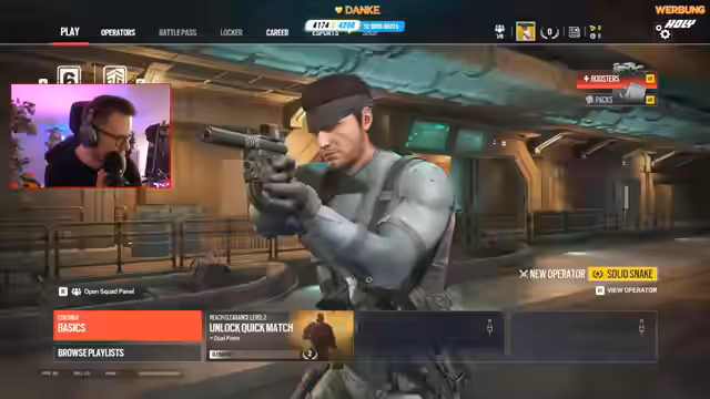 01:08:06Nach technischen Problemen und einer längeren Wartungszeit startet das Rainbow Six Siege Update. Der Streamer zeigt sich begeistert von der neuen, aufgeräumten Menüführung, insbesondere vom Zugriff auf Booster und Battle-Packs. Er testet den neuen Operator Solid Snake, dessen Waffe 'Farmers', und stellt fest, dass die Map-Rotation geändert wurde, wobei einige klassische Maps wie Kanal entfernt wurden. Für die Zukunft plant Ubisoft nur noch neue Operatoren und keine Maps mehr.