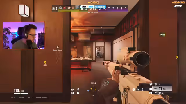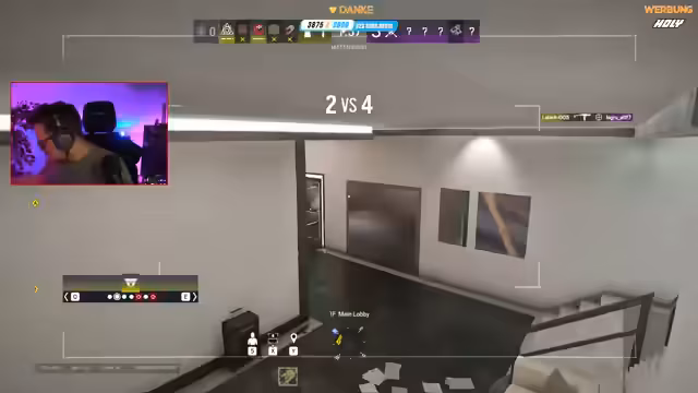 03:55:51Das Rainbow Six-Spiel von einem Teammitglied wird als chaotisch beschrieben, mit langsamer Koordination und schlechter Kommunikation. Ein Mitspieler wird als "Sack" betitelt und es gibt Probleme mit dem Einnehmen eines Objekts. Währenddessen versucht der Streamer, die Situation zu analysieren und strategische Ratschläge zu geben, was aber an mangelnder Teamk scheitert.