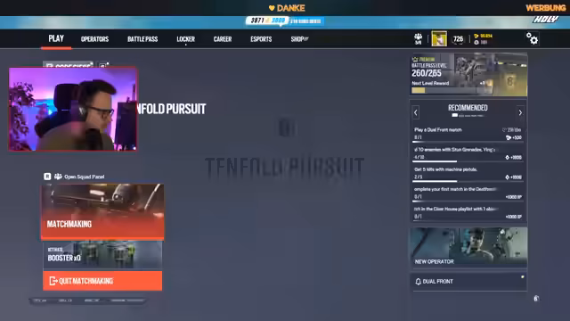 04:19:45Ein Spieler stellt die Authentizität des Streams infrage, was der Streamer als Viewboting-Vorwurf interpretiert und entschieden zurückweist. Er betont seine langjährige Erfahrung im Rainbow Six Siege, Teilnahme an Major-Turnieren und seine Partnerschaft mit Ubisoft. Der Streamer sieht seine Position als Deutschlands relevantester Rainbow-Spieler und kritisiert die negative Haltung in der Community gegenüber Streamern ohne Top-Champ-Status.