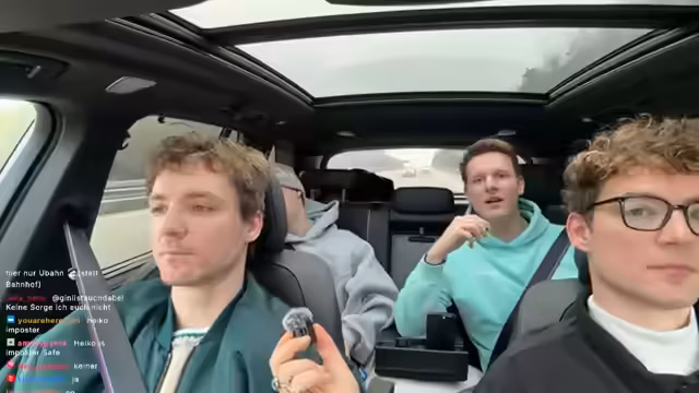 00:14:47Während der Fahrt werden die technischen Aspekte der Stream-Produktion diskutiert, einschließlich der Anordnung der Mikrofone und Kameras. Die Streamer tauschen persönliche Anekdoten über ihre Erfahrungen mit dem Autofahren aus. Heiko berichtet von einem beängstigenden Erlebnis im Straßenverkehr, während Roman von seinen frühen Fahrstunden mit seinem Onkel erzählt. Diese persönliche Note unterbricht die Fahrt und gibt Einblicke in das Leben der Streamer abseits des Streams.
