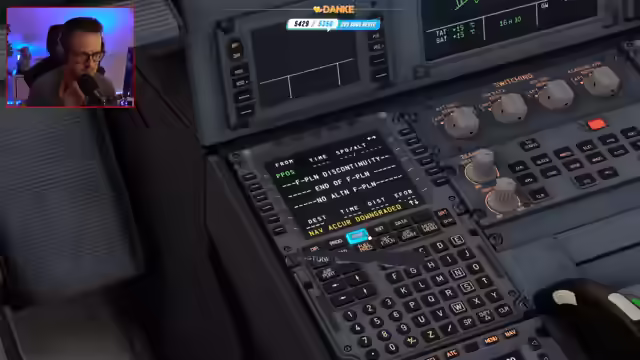 04:38:53Der Flug startet im Sonnenuntergang, aber der Streamer kämpft weiterhin mit der Steuerung und der Eingabe des Flugplans. Es gibt Probleme mit der Wegführung und der Höhe, da das Flugzeug nicht wie gewünscht sinkt. Die Bedienung des Flugzeugs erweist sich als frustrierend, insbesondere das doppelte Klicken, um die Maus zu bewegen. Trotz der Schwierigkeiten wird versucht, den Flug manuell fortzusetzen, wobei der Streamer sich über die mangelhafte Performance und die ständigen Funksprüche beschwert. Es wird deutlich, dass die Bedienung des Spiels viele Tücken hat und einiges an Einarbeitung erfordert.