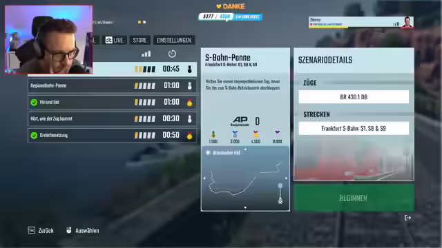 00:58:35Nachdem die S-Bahn-Aufgabe beendet ist, folgt der Wechsel zu einer DBBR 143, mit der es zurück nach Frankfurt gehen soll. Der Zug hat bereits Verspätung, was der Streamer auf den verspäteten Lokführer schiebt. Es wird kurz das Innere des Zuges erkundet, bevor die Fahrt losgeht. Der Streamer nimmt sich Zeit, die Einstellungen im Führerstand vorzunehmen, wie Heizung und Scheibenwischer. Es gibt Probleme mit der Zugzielanzeige, die nicht richtig funktioniert. Trotzdem startet die Fahrt, und der Streamer versucht, sich an die Geschwindigkeitsbegrenzungen zu halten. Es kommt zu Schwierigkeiten mit der Steuerung und den Bremsen des Zuges, was zu einigen brenzligen Situationen führt. Trotz der Probleme und der Verspätung versucht der Streamer, die Fahrt so gut wie möglich zu meistern und die Zuschauer zu unterhalten.