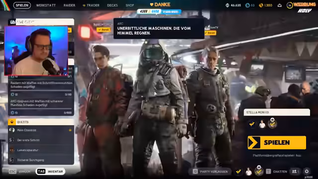 03:12:02Der Stream konzentriert sich intensiv auf das Gameplay von Arc Raiders. Der Streamer und sein Team kommunizieren über Taktiken, wie das Aufhalten von Wänden, das Platzieren von Fallen und das Warten auf den richtigen Zeitpunkt für einen Angriff. Es werden spezifische Spielmechaniken wie das Management von Hatches, das Nutzen von Drohnen zur Aufklärung und das Verständnis von Camp-Strategien besprochen, wobei der Fokus auf Geduld und Teamkoordination liegt, anstatt auf überstürzten Angriffen.