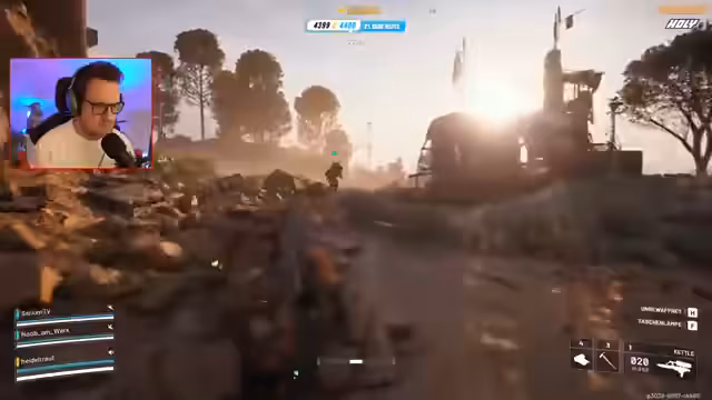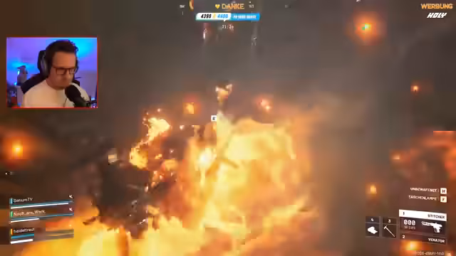 01:31:40In diesem Zeitabschnitt finden sich hektische Kämpfe um ein Gebäude mit einer Metalltreppe und einem Fahrstuhl. Streamer und Gegner sind eng beieinander und es kommt zu Verwirrung, wer zu welchem Team gehört. Mehrfach wird erwähnt, dass mindestens drei Teams in der Nähe sind und der Streamer unter Beschuss gerät. Es kommt zu mehreren Toden, auch bei eigenen Teammitgliedern, was zu Frustration und Vorwürfen führt.