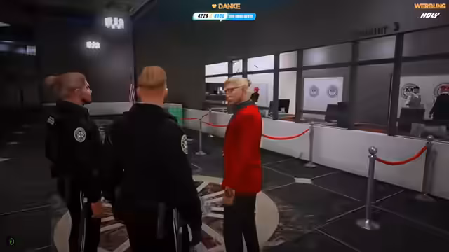 03:54:03Nach der Suspensionsankündigung geht es weiter um ein internes Problem bei der Polizei. Ein Gruppen-Police Officer bei der State Police hat sich korrumpiert, und der Streamer weiß Out-of-Character, wer es ist, verrät dies jedoch im RP nicht, um das Erlebnis nicht zu ruinieren. Anschließend richtet sich der Fokus auf eine schwerwiegende Warnung: Ein Tipp lässt befürchten, dass heute etwas an der PSB-Bank passieren könnte, sei es ein Überfall oder ein Diebstahl von Equipment. Commissioner Weiß schlägt vor, dass die Bank und ihre Security sofort gewarnt und überprüft werden müssen.