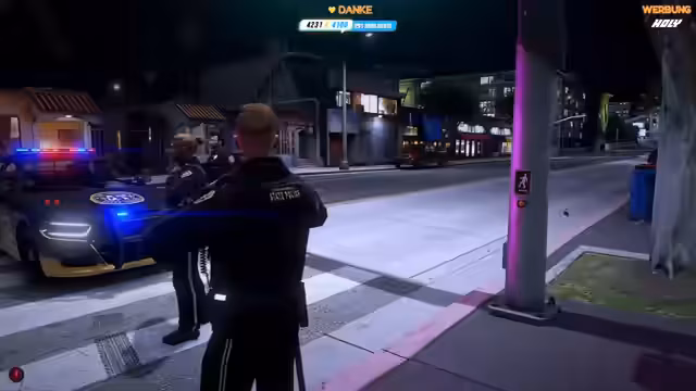 03:26:46Der Streamer nimmt seine Rolle als Police Commissioner Walter Weiß auf und bearbeitet den Hinweis aus dem Brief. Er spricht mit der Leitstelle und meldet einen Verdächtigen, der einen Polizeiwagen über ein Stoppschild hat bremsen lassen. Eine polizeiliche Kontrolle wird eingeleitet. Neben den dienstlichen Aufgaben gibt es auch alltägliche Interaktionen, wie der Versuch, einen Schal im Schneesturm zu kaufen und die Freude an der weihnachtlichen Atmosphäre in San Andreas.