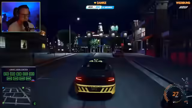 08:31:47Eine neue Einsatzmeldung bei der State Police wird bearbeitet, die auf drei maskierte und bewaffnete Personen hinweist, die in einem Auto unterwegs sind. Ein Streifenwagen fährt los und verfolgt das flüchtige Fahrzeug durch die Straßen, während der Einsatzleiter die Fahrt koordiniert. Es kommt zu mehreren riskanten Manövern, Drifts und Verfolgungsjagden durch verschiedene Stadtteile. Die Zielpersonen zeigen den Polizisten den Mittelfinger, was die Situation weiter eskalieren lässt. Die Verfolgung endet jedoch in einer Gasse, ohne dass die Polizisten die Verdächtigen festnehmen können. Die Fahrer entkommen.