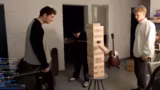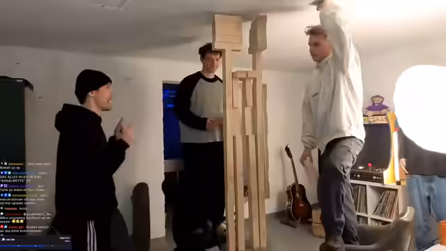 Bei einem Treffen der drei Freunde wurde ein klassisches Brettspiel in einer besonderen, großen Version ausgetragen. Nach dem Duell mit unkonventionellen Hilfsmitteln und einer Disqualifikation wurde der Sieger nach einem langen Stechen gekürt. Die Runde als längste dokumentierte Jenga-Partie gilt damit als beendet.