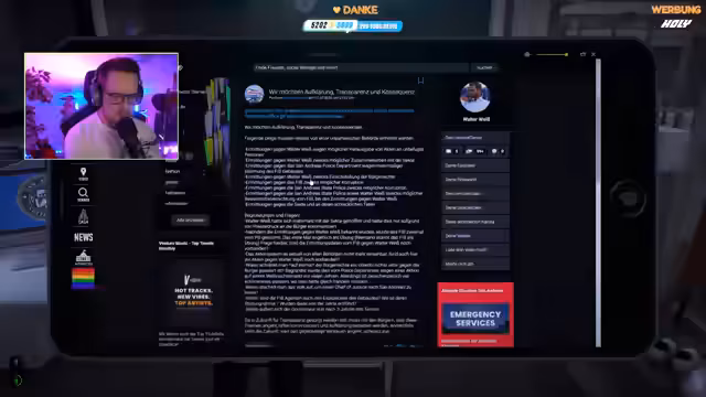 05:05:23Auf den Tod des jungen Mannes hin meldet sich ein anonymes Account mit dem Namen 'Deine Meinung' und wirft dem Police Commissioner, der State Police und dem FAB schwere Vorwürfe vor. Es wird von Ermittlungen gegen Walter Weiß wegen möglicher Bürgerrechts-Einschränkungen, von Korruption beim FAB und der State Police sowie der möglichen Vernichtung von Beweismitteln gesprochen. Anonyme Anschuldigungen und interne Kommunikationsprobleme der Behörden führen zu einem starken Verlust des Vertrauens bei der Bevölkerung.