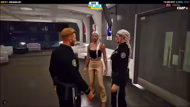 03:12:06Vier Personen wurden permanent vom Server gebannt, darunter Officer Donut und die Psychologin Snow, aufgrund von Beef in Discord-Nachrichten. Der Streamer appelliert an die Spieler, sich nicht in Discord-Nachrichten zu streiten und das RP nicht dadurch zu beeinflussen. Mr. Riggs reist aus, weil er mit Penny Haydens Panikattacken nicht umgehen kann. Der Streamer findet es schade, dass er sich nicht die andere Perspektive anhört. Es wird erwähnt, dass Faye auch beleidigt wurde, aber Riggs damals nicht ausreisen wollte. Am 12. findet der Prozess gegen Dorito statt, die Walter umzubringen versuchte. Die Solises haben sich scheiden lassen. Miss Solis wurde von ihrem Ex-Partner angerufen und klingt schlecht. Sie wird in der Koppa angestellt. Um 21 Uhr findet eine Pressekonferenz statt, um das Vertrauen in die Polizei zu verbessern. Die Polizei plant, den Leuten zuzustimmen und nett zu sein. Es wird befürchtet, dass die Leute dann sagen werden, die Polizei sei nie für sie da. Eine Anklage gegen das Kartell wurde nie erhoben, weil Mr. Snyder es verprasselt hat. Es wird überlegt, ob Dorito freigesprochen wird. Der Streamer vermutet, dass der Fries freigesprochen wurde, weil der Anklagepunkt falsch war. Miss Solis schläft wieder zu Hause, während Mr. Solis bei ihm zu Hause schläft. Sie ist schon länger getrennt. Es gibt Gerüchte über eine Beziehung zwischen Miss Solis und Mr. Gauthier. Sie überlegt, ob sie in der Koppa arbeiten soll.
