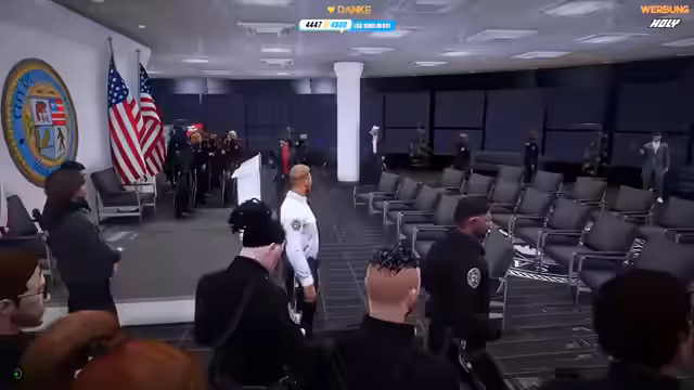08:15:40Im Rahmen der Vorbereitungen auf die Pressekonferenz wird die Sicherheitsstufe der Polizei auf maximal erhöht. Alle Officer erhalten Stufe-3-Westen und dürfen Schrotflinten mitführen. Gleichzeitig gibt es eine unerwartete, schlechte Nachricht: Officer Dix kündigt seinen Job bei der State Police, um für seine verstorbene Mutter nach Spanien zu reisen, was den Streamer sichtlich trifft und das Team um eine wichtige Person vermindert.
