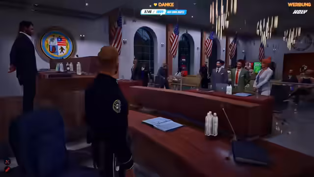 00:31:34Der Prozess um Mr. Kaisaki geht weiter, mit neuen Zeugenaussagen. Es gibt eine unklare Situation, bei der eine Person im Wasser erschossen wurde, nachdem sie zuvor mit einem Messer attackiert hatte. Dies ist noch in Klärung und könnte als Totschlag gewertet werden. Gleichzeitig wird die Organisation der Polizei auf dem Server behandelt, darunter die Sicherung des Gerichtsgebäudes und die Beschaffung von Munition für das SWAT-Training.