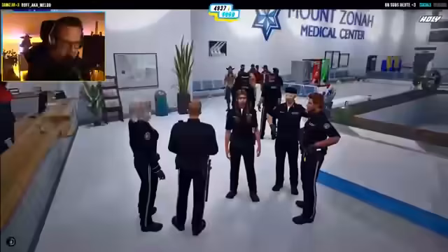 09:01:56Der Stream beginnt mit einem Einsatz an den Lagerhallen, bei dem mehrere Festnahmen stattfinden. Zunächst wird Jasmine Clark wegen des Verdachts auf Besitz von staatlichem Eigentum festgenommen. Anschließend werden zwei weitere Personen, Blackstone Youth und Lilia Olivia, kontrolliert. Youth wird wegen Verdachts auf Vorteilsannahme und Olivia wegen des Verdachts auf Drogenbesitz festgenommen, wobei ein ungewöhnliches Auto auffällt.