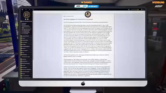 01:15:20Es wird überlegt, Dynasty anzurufen, um die Miete für Faye zu halbieren, da diese nicht anwesend ist. Eine SMS wird erwähnt, dass der Dauerauftrag ausgelaufen ist. Es werden E-Mails gelesen und beantwortet, darunter das Ergebnis einer Ermittlung gegen Mrs. Brooks wegen Vorteilsgewährung, bei der kein Fehlverhalten festgestellt wurde, obwohl ihr moralisches Handeln fragwürdig erscheint. Die Akte wird geschlossen, da kein Anfangsverdacht mehr vorliegt. Es wird erklärt, dass Mrs. Brooks jeden Strohhalm nutzte, um Mr. Tuber zu schützen. Die moralische Instanz bei der Staatsanwaltschaft wird kritisiert. Eine Einladung zu einem Wein-Event mit Isabella Berlin wird erwähnt, bei dem CEOs von Unternehmen Vorträge halten. Brian Malone bittet um Unterstützung in der Werkstatt aufgrund von Bedrohungen durch die Russen und finanziellen Sorgen. Ein Anruf von Mr. Diggs wird entgegengenommen, um ein Strafmaß von Dante Edwards zu überprüfen. Es wird festgestellt, dass am 9.8. tatsächlich ein Strafmaß von 75 Dollar abgezogen wurde. Es werden Bilder von Dystopia 2025 und neue Posen auf dem Server angesehen.