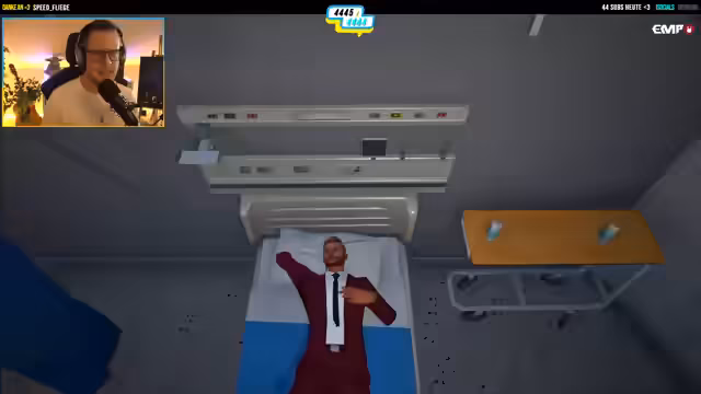 02:10:34Der Stream beginnt mit einer medizinischen Untersuchung eines Patienten namens Edmund Weiß. Er gibt an, bei einem Überfall angeschossen worden zu sein und trägt eine Schutzweste, die vermutlich den Projektilstop abgefangen hat. Nach einer Ultraschalluntersuchung des Bauchraums, bei der keine Verletzungen oder freie Flüssigkeit festgestellt werden, und einem Röntgenbild, das Platten im Körper, aber keine frischen Metallteile zeigt, wird der Patient als außer Lebensgefahr befunden. Er erhält einen Salbenverband und Schmerzmittel und wird nach Hause entlassen.