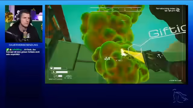 04:11:04Der Stream wechselt das Spiel zu Planet Crafter. Die Protagonisten automatisieren ihre Basis, indem sie Lager vergrößern und mehr Drohnen produzieren. Eine große Herausforderung ist das massive Aufräumen von Schleim in ihrer Anlage. Sie müssen die Gegend von toxischen Rückständen reinigen, um neue Gebäude wie eine automatische Farm errichten zu können. Dies erfordert präzises Management von Ressourcen und Maschinen.