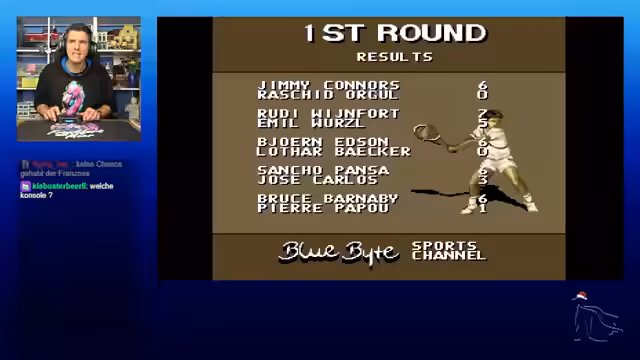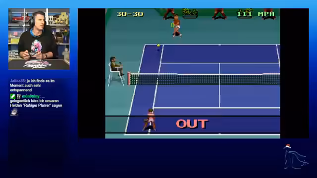 06:01:35Das Tennismatch gegen Bruce Barnaby entwickelt sich zum dramatischen Höhepunkt. Trotz strategischer Versuche wie Surfen-Volley und Netzangriffen dominiert der Computergegner mit präzisen Grundlinienschlägen. Der Streamer analysiert Spielmechaniken wie Risikoschläge, Ballgewichtungen und den Einfluss von Druck auf die Leistung. Frustration über scheinbar unfair spielende KI und technische Probleme mit der Steuerung nehmen im Verlauf des Matches zu.