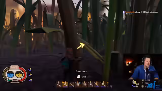 01:01:07Bei der Erkundung der Umgebung entdeckt der Streamer eine Bedrohung in Form eines Bombardierkäfers, was zu einem intensiven Kampf führt. Er sammelt Ressourcen wie Pilze und Larvenstacheln und stellt fest, dass Futter nicht mehr das Hauptproblem ist. Er findet ein Laborzelt und kann eine verbesserte Axt sowie eine Gasmaske herstellen. Die Kämpfe werden intensiver, als er auf größere Tiere wie Baumstinker trifft, gegen denen er mit seiner Ausrüstung nur schwer bestehen kann.