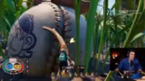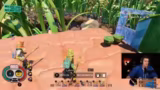 00:32:41Nachdem die technischen Hürden überwunden sind, beginnt der eigentliche Gameplay-Teil mit dem Spiel Grounded. Beide Spieler sind in der Welt verkleinert und müssen sich im Garten zurechtfinden. Das primäre Ziel ist es, ein sicheres Lager zu bauen. Die ersten Schritte bestehen im Einsammeln von Ressourcen wie Sprösslingen, dem Erstellen eines Vorratskorbs zum Verstauen der überfüllten Inventare und der Planung, ein Fundament auf dem Baseballfeld zu errichten.