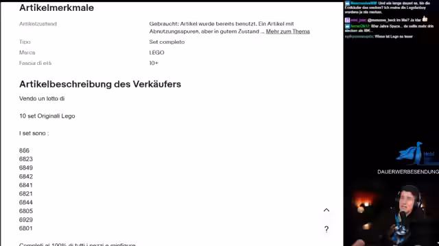 02:25:51Der Streamer findet ein Angebot für einen Lego-Doppeldeckerbus, das angeblich nach "riecht". Er weist darauf hin, dass es sich wahrscheinlich um einen Raucherschaden handelt und warnt vor dem Kauf solcher "Rauchersets". Anschließend widmet er sich dem Thema VIP-Karten. Er zeigt sich verwundert über hohe Preise für gebrauchte VIP-Karten und stellt fest, dass diese in Wirklichkeit keinen echten Wert haben. Er kritisiert auch den Handels mit solchen Karten.