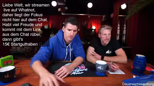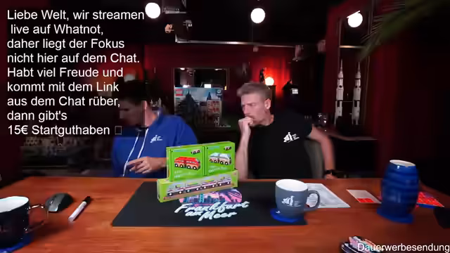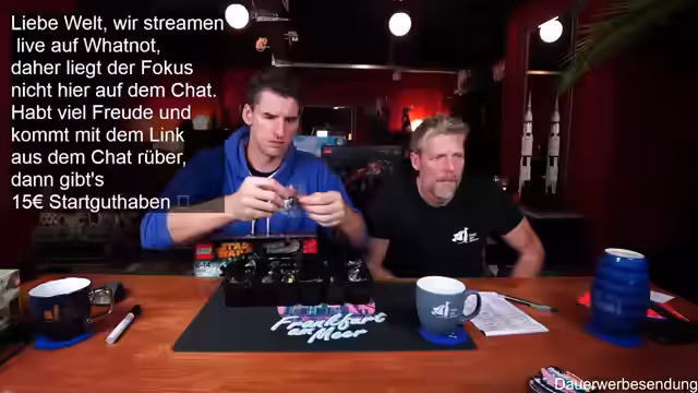 00:02:55Der Stream startete erfolgreich nach mehreren Versuchen, wobei Ton und Bild einwandfrei funktionierten. Nach einer kurzen Begrüßung der Zuschauer auf Twitch und Whatnot wurde das Konzept der parallelen Live-Streams erläutert. Auf Whatnot, einer Plattform, die von Michael betrieben wird, werden Lego-Sets und andere Artikel zum Verkauf angeboten. Der Streamer bewirbt den Kanal und die Produkte, während Michael für den Versand und die Abwicklung zuständig ist. Es wurden spezielle Flash-Sales und Giveaways angekündigt, darunter seltene Lego-Sets und Kilo-Ware. Zuschauer können über einen Link im Chat auf Whatnot zugreifen und erhalten ein Startguthaben von 15 Euro ohne Mindestbestellwert, wobei nur der Versand zu zahlen ist. Bei Abholung im Laden entfallen die Versandkosten komplett, was die Attraktivität der Angebote weiter erhöht.