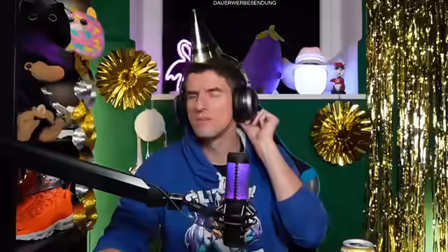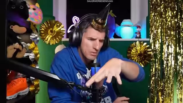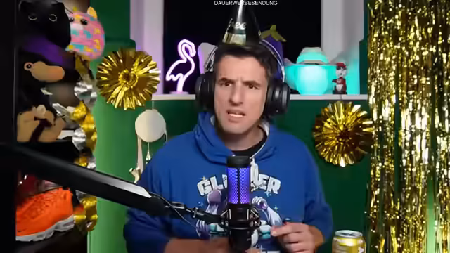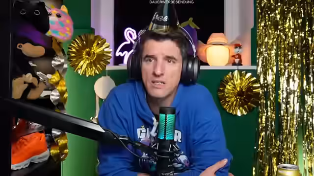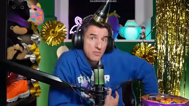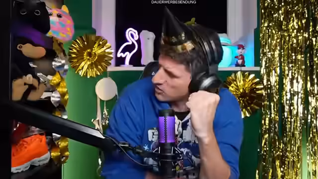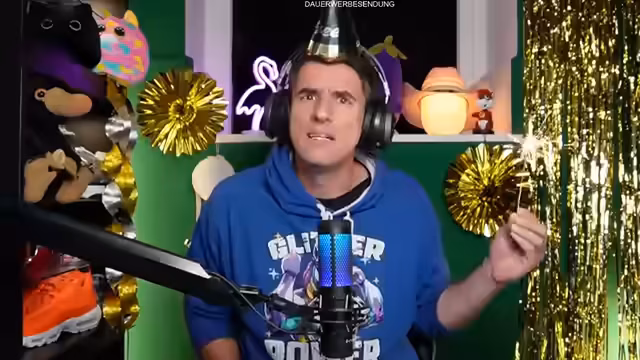 00:04:52Der Streamer eröffnet den Silvester-Livestream mit einer herzlichen Begrüßung der Community und der anwesenden Ehrenmods Toni und Dominik. Die Stimmung wird als 'kuschelig' beschrieben, begleitet von opulenter Dekoration mit Plüschtiern, Flamingo und Palmen. Er erwähnt Raclette-Genuss und die Vorbereitungen der Zuschauer mit Snacks und Getränken. Die technische Kabine wird als Bunker mit dicken Wänden charakterisiert, in der bereits bei früheren Überschwemmungen Wasser eingedrungen war.