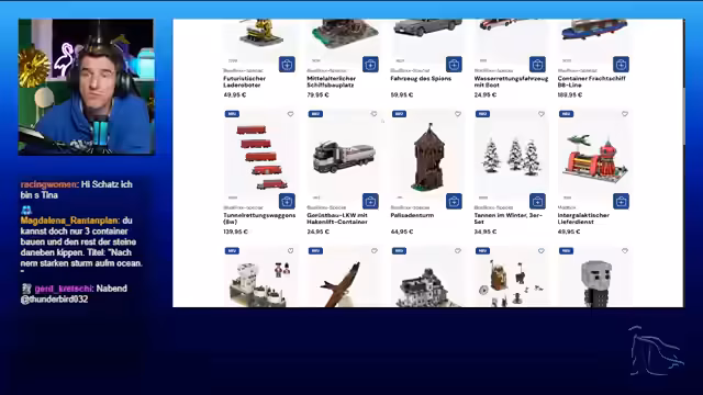 01:12:51Es werden zahlreiche Lego-Sets vorgestellt und bewertet. Das Atelier des Astronomen (7500 Teile) und eine Geheimfachkiste mit fluoreszierenden Intarsien werden gezeigt, wobei Letztere mit 40 Euro als zu teuer kritisiert wird. Hochmotte und Riesenmotte werden erwähnt, ebenso wie Set 460 (Magdalena) für 25 Euro. Der Streamer analysiert Set 482 (Gartenrestaurant) und kritisiert fehlende Details sowie zu wenig Figuren für den Preis. Besondere Aufmerksamkeit erhalten Blue-Bricks-Sets wie ein modulares Hafenset.